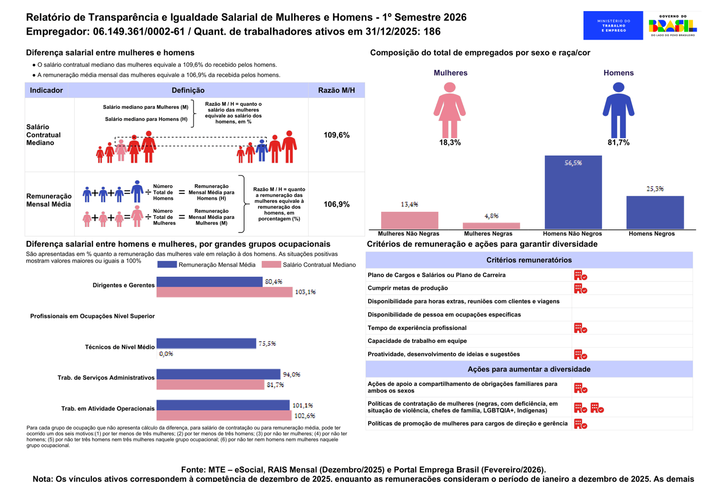 Relatório de Transparência e Igualdade Salarial de Mulheres e Homens - 1º Semestre 2026